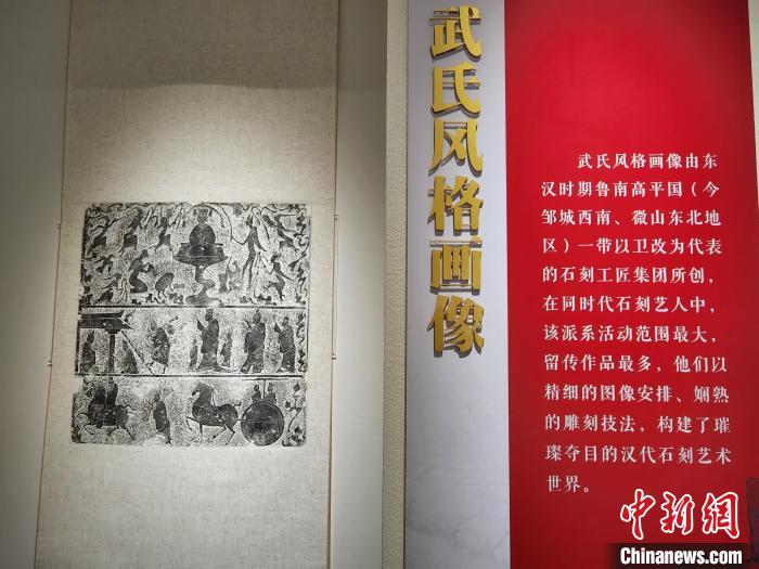 記者當(dāng)天在展覽現(xiàn)場了解到,武氏墓群位于今山東省濟(jì)寧市嘉祥縣城南15公里處,是一座東漢時期的家族墓地。武梁祠是其中的一座墓上石祠堂。以武梁祠為代表的武氏祠畫像,秉承三代鐘鼎玉器雕刻工藝,開啟魏晉唐宋繪畫的先河,其雕刻技藝之精妙,圖像內(nèi)容之豐富,居全國漢畫像石之首。