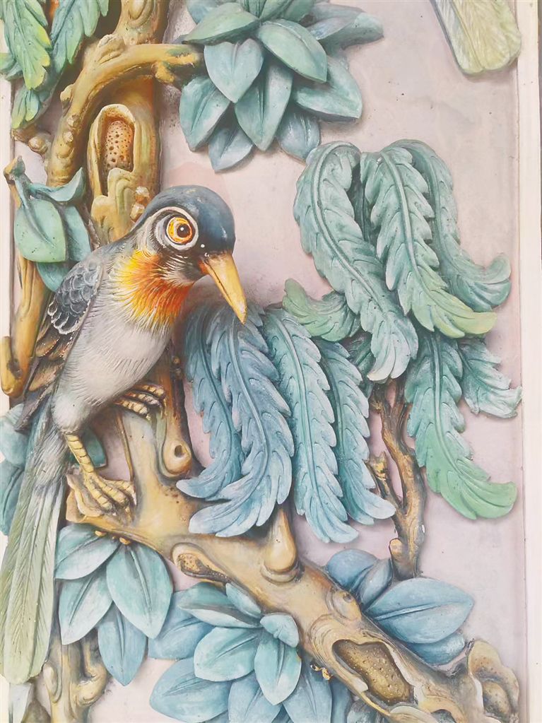 在海南的灰塑作品中,留白的運(yùn)用同樣有“以無(wú)勝有”的視覺(jué)效果?!盎宜茏髌飞饰宀拾邤?,一眼看過(guò)去容易產(chǎn)生錯(cuò)亂的感覺(jué),這時(shí)候留白就顯得很重要?!卞竞iw酒店負(fù)責(zé)人符燕舞說(shuō),灰塑作品有明顯的寫實(shí)風(fēng)格,所呈現(xiàn)的物象紛繁多彩。如果要將灰塑作為一種藝術(shù)品保留下來(lái),用留白的手法為作品增添美感十分必要。