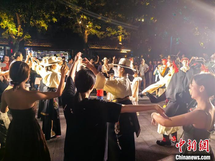值得一提的是,為了讓觀眾更好地感受橫斷秘境的特色,開幕式當(dāng)晚,甘孜州木雅文化藝術(shù)博覽中心的演員們繼續(xù)在中國刀剪劍博物館、中國傘博物館的運(yùn)河入口處,進(jìn)行鍋莊舞表演,帶領(lǐng)民眾共同感受鍋莊舞這一國家級非遺的魅力。