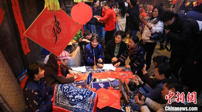 中新社湖南永州1月26日電 題:非遺活動(dòng)迎新年 女書文創(chuàng)受青睞