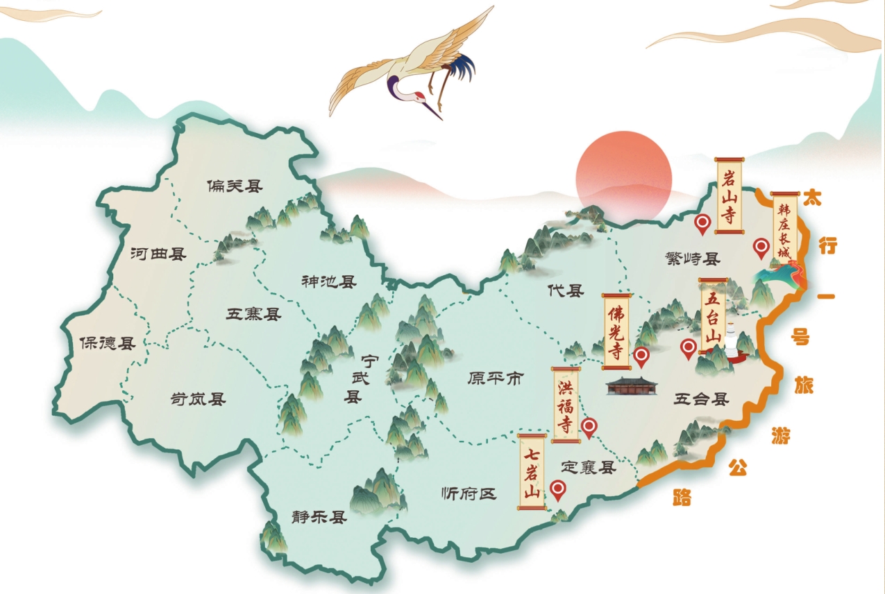 太行一號旅游公路是山西省農(nóng)村道路的重要組成部分,同時也是打造黃河、長城、太行三大旅游板塊,推進鄉(xiāng)村振興的戰(zhàn)略性基礎(chǔ)性工程。沿途貫穿忻州、太原、陽泉、晉中、長治、晉城6市45個縣(市、區(qū)),聯(lián)通全省122個A級以上景區(qū)、239個非A級旅游資源(點),主線已成功入選全國20條“行在鄉(xiāng)村,游在路上”的最美自駕精品路線。旅游公路忻州段起點位于五臺縣韓家樓村,途經(jīng)五臺山風(fēng)景區(qū),終點與繁峙縣平型關(guān)長城一號旅游公路主線相接,全長185公里。