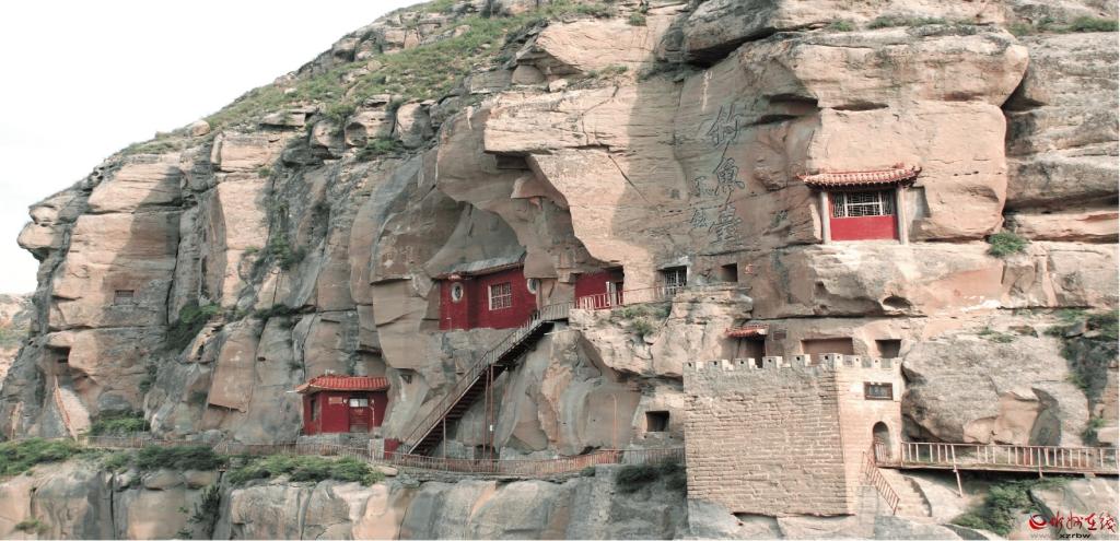 故城石窟位于保德縣楊家灣鎮(zhèn)故城村西1500米、黃河?xùn)|岸石崖上。清順治二年(1645),由陳奇瑜構(gòu)筑,歷時(shí)三年建成,建有呂仙祠等建筑。故城石窟坐東向西,占地面積約600平方米。向南石砌的古堡式門洞,門洞上方匾書“釣魚臺(tái)”,頂部砌有女兒墻垛口。山壁上有大小不等的10孔人工開鑿的石窟。