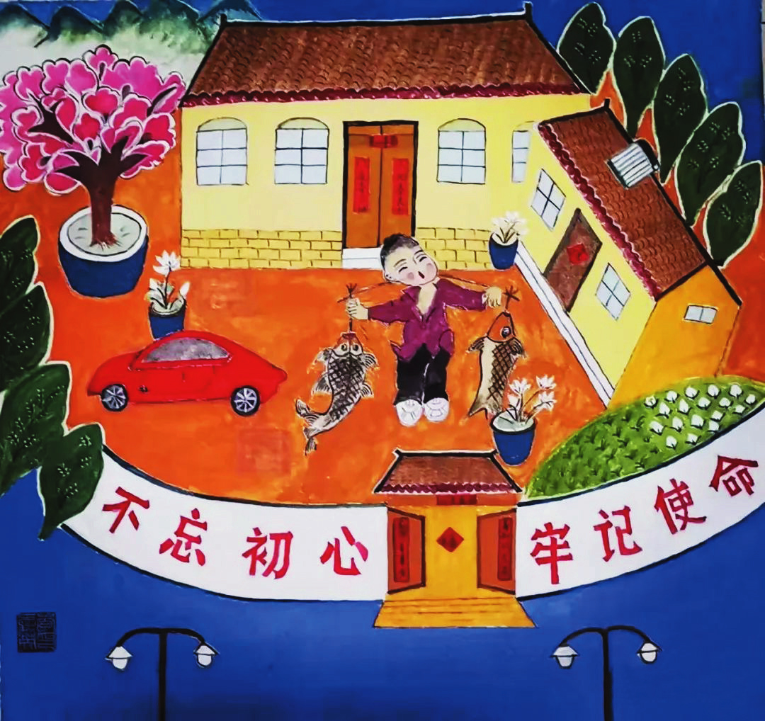她們的作品,取材于農(nóng)村、農(nóng)業(yè)、農(nóng)民生活,或表現(xiàn)美好的生活場景,或反映豐收的喜悅,或體現(xiàn)鄉(xiāng)愁,在表現(xiàn)手法上采用大膽的夸張、變形,巧用艷麗的色彩,人物刻畫細致入微,內(nèi)心喜悅躍然紙上,富有鮮明的地方特色。綜觀她們的作品,無不展現(xiàn)了社會主義新農(nóng)村在新時代的新變化、新風貌,在傳承和弘揚代縣文化、引領社會主義精神文明建設方面做出了出色的嘗試與實踐。