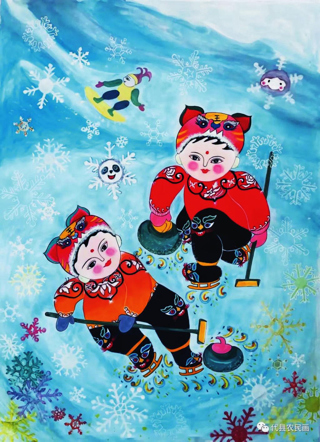 千淘萬漉雖辛苦,吹盡狂沙始到金。這些農(nóng)民畫促進會的女畫家為了創(chuàng)作吃盡了苦,費盡了心,但也在追求藝術的路上收獲了許多。丁全愛創(chuàng)作的《寒燕兒》《甜》入展山西省群眾文化惠民工程“美麗鄉(xiāng)村”現(xiàn)代農(nóng)民畫優(yōu)秀作品展,《吉祥五寶》《跤娃》《春拂滹沱》入選山西省脫貧攻堅農(nóng)民畫展;戴翠平的《撓閣上來了》被山西省農(nóng)民畫研究會收藏,2020年疫情期間創(chuàng)作的《逆行者》《眾志成城抗疫情》《全球同心抗疫情》均被代縣檔案館收藏;賈永花的《春意盎然》入展山西省群眾文化惠民工程“新農(nóng)村、新氣象”省農(nóng)民畫優(yōu)秀作品展,《農(nóng)家樂》被山西省文化館收藏;祁磊創(chuàng)作的《盛世鼓舞》被評為山西省群眾文化惠民工程“新農(nóng)村、新氣象”省農(nóng)民畫最佳作品;在中國農(nóng)民畫研究會2022年“虎虎生威慶冬奧”專題云展活動中,丁全愛、王粉玲、戴翠平、孫瑰峰、戴永蓮、柳尚艷六位畫家的作品被選中入展……她們的作品先后在《山西日報》《忻州日報》專欄刊登,逐漸被省內(nèi)外的行家和廣大農(nóng)民畫愛好者所認可,釋放出濃烈的彩墨馨香。(劉 睿)
