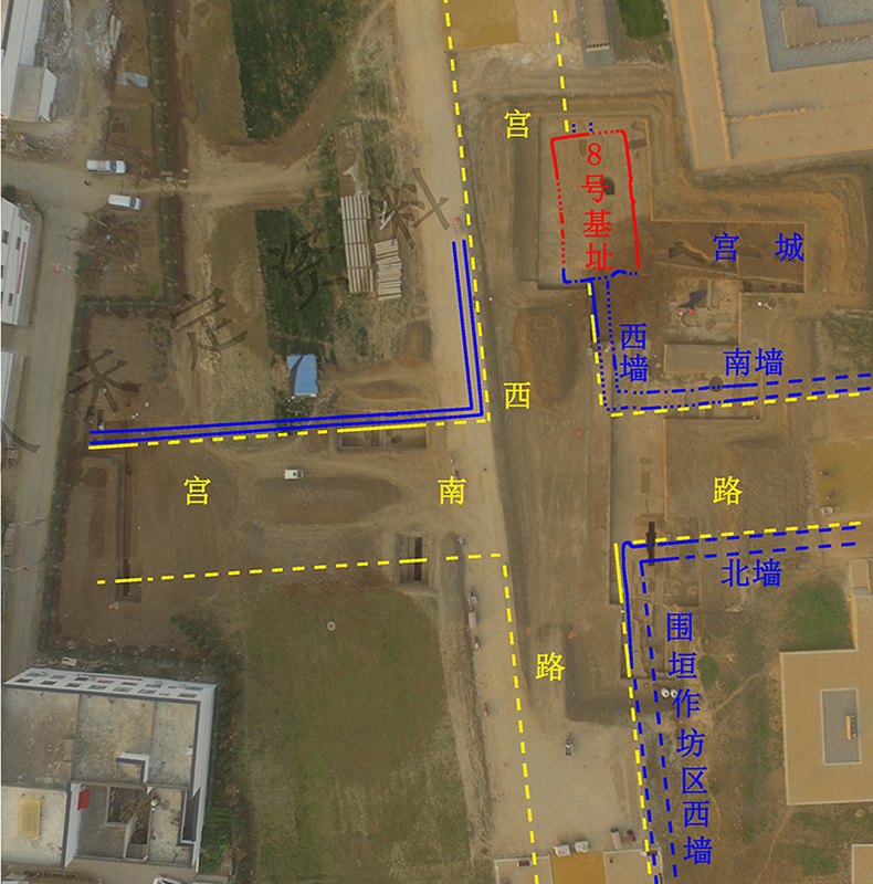 河南偃師二里頭遺址中心區(qū)“九宮格”式布局、“井”字形主干道路網(wǎng)絡(luò)面貌更加清晰,新發(fā)現(xiàn)宮殿區(qū)南、北兩側(cè)道路自宮西路向西延伸400余米,在宮西路以西新發(fā)現(xiàn)一條南北向的道路,道路兩側(cè)有墻垣,將二里頭遺址劃分為多個(gè)方正、規(guī)整的網(wǎng)格區(qū)域,多個(gè)網(wǎng)格內(nèi)均曾發(fā)現(xiàn)不同等級(jí)的建筑基址和墓葬,顯示出分區(qū)而居、區(qū)外設(shè)墻、居葬合一的結(jié)構(gòu)布局。