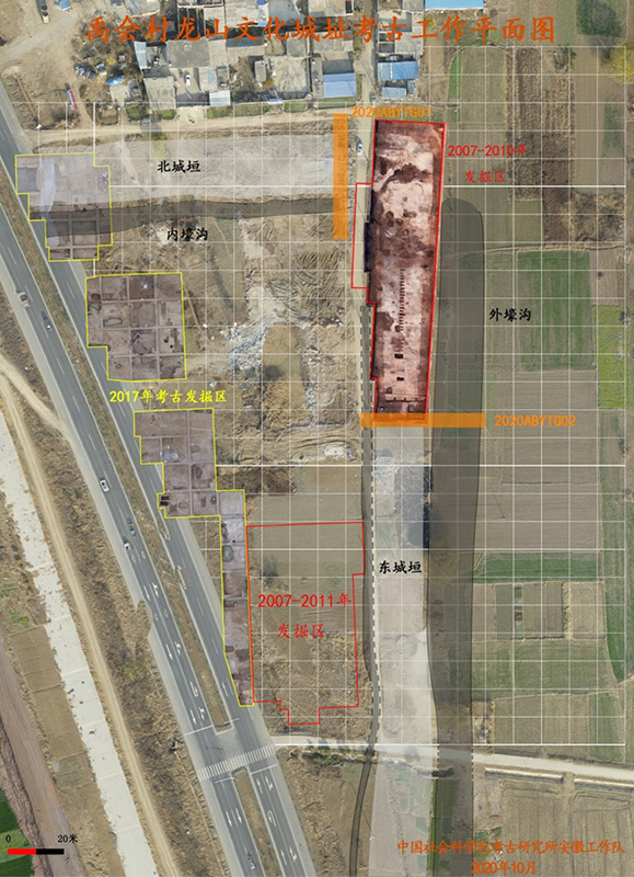 2020年禹會(huì)村龍山文化城址考古工作平面圖。匯報(bào)者供圖