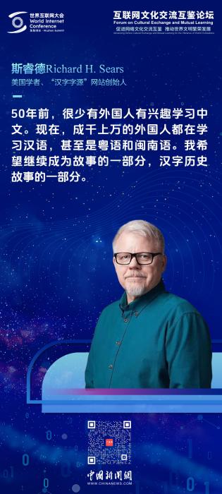 中新網烏鎮(zhèn)11月21日電(林卓瑋)“事物總是在變化,但文化的傳承永遠需要我們去努力?!?1日,在世界互聯(lián)網大會烏鎮(zhèn)峰會互聯(lián)網文化交流互鑒論壇上,被譽為“漢字叔叔”的美國漢學家斯睿德(Richard Sears)從創(chuàng)新傳承漢字的個人經歷出發(fā),講述了一段跨越75年、連接中美的傳奇故事。
