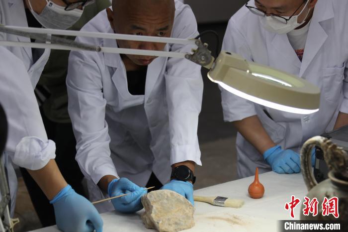 5月20日,河南洛陽,龍門石窟研究院的“文物醫(yī)生”對文物進行修復(fù)。 中新社記者 闞力 攝