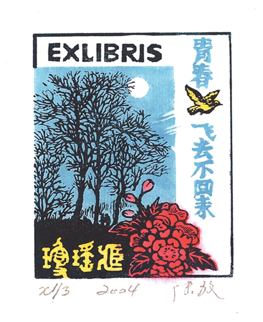 創(chuàng)作一枚專屬于自己的水印木刻藏書(shū)票,是一場(chǎng)頗富詩(shī)意與匠心的藝術(shù)之旅。從構(gòu)思到設(shè)計(jì),從刻板到印刷,充滿著創(chuàng)作者對(duì)文化的敬畏、對(duì)書(shū)籍的熱愛(ài)以及對(duì)美好的期許。水印木刻藏書(shū)票的制作并不簡(jiǎn)單,會(huì)經(jīng)歷各種各樣的意外——紙張的濕度、顏色的厚薄、錯(cuò)版等都會(huì)影響畫(huà)面效果。但這何嘗不是一次深度的文化體驗(yàn)?在設(shè)計(jì)中認(rèn)知自我,與書(shū)籍神交;在勞作中體悟精益求精的工匠精神;在印制中領(lǐng)略千變?nèi)f化的色彩韻味。當(dāng)用刻刀在木板上刻下自己的名字,馬蓮在紙的背面輕輕摩擦,墨色慢慢洇化,心靈在方寸之間得到浸潤(rùn)。如果把創(chuàng)作過(guò)程寫(xiě)成一本書(shū),水印木刻帶來(lái)的奇妙感受將是書(shū)中最精彩的情節(jié)。
