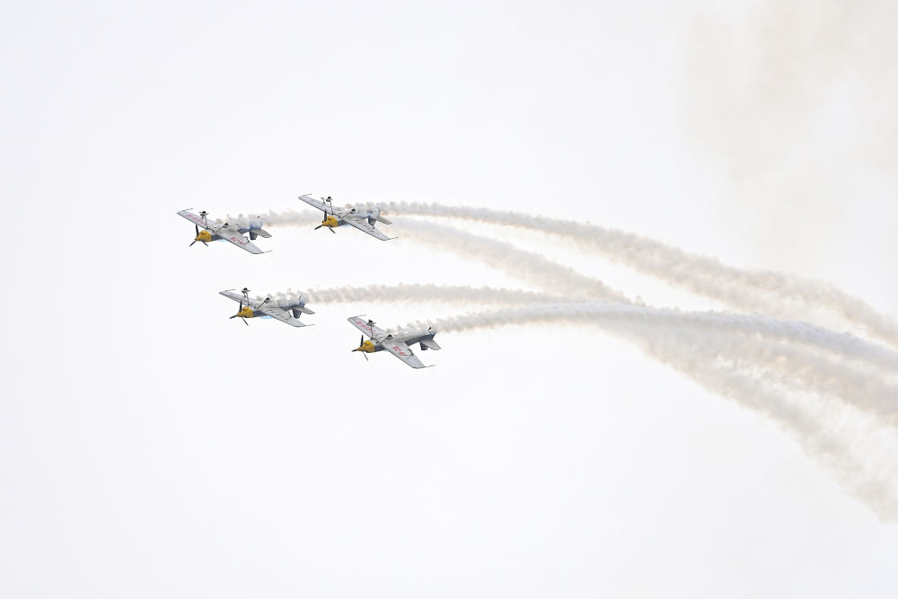 2023年9月28日,特技飛行表演隊(duì)在2023太原國際通用航空博覽會上表演。新華社記者楊晨光 攝