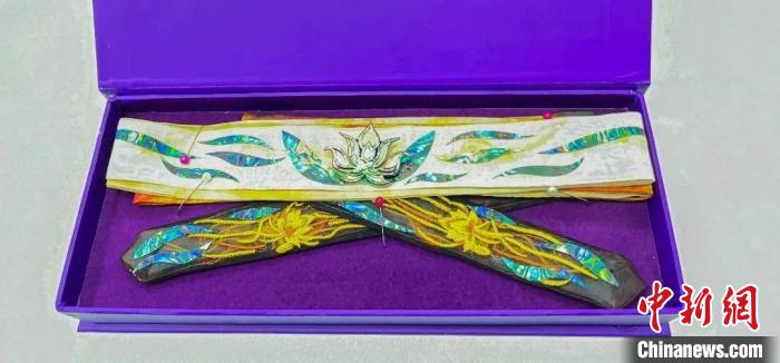 一旁,葉晶晶則忙著給影視劇劇組提供非遺道具?!芭c《永夜星河》制作團(tuán)隊(duì)的合作,標(biāo)志著我們首次嘗試將傳統(tǒng)工藝與現(xiàn)代影視藝術(shù)進(jìn)行融合。我們結(jié)合了傳統(tǒng)的螺鈿工藝與絲綢工藝,不僅推出了螺鈿發(fā)帶,還設(shè)計(jì)了蓮花頭飾和掛飾。每一步驟都經(jīng)過(guò)精心策劃和細(xì)致制作,最終讓這些螺鈿飾品成為劇中最閃亮的道具?!?/p>