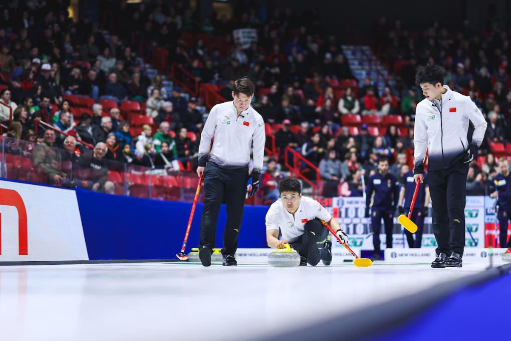 中國(guó)隊(duì)在比賽中。圖片來(lái)源于世界冰壺聯(lián)合會(huì)官網(wǎng)