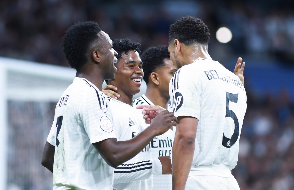 皇馬首回合在客場1:0小勝對手。回到伯納烏,“白衣軍團(tuán)”卻在開場第16分鐘率先丟球。巴雷內(nèi)切亞帶球突入禁區(qū)左路,低射得手,為皇家社會首開記錄。第30分鐘,皇馬扳回一城,恩德里克接維尼修斯直傳,帶球單騎闖關(guān),面對對方門將挑射得手,為主隊重新奪回主動。