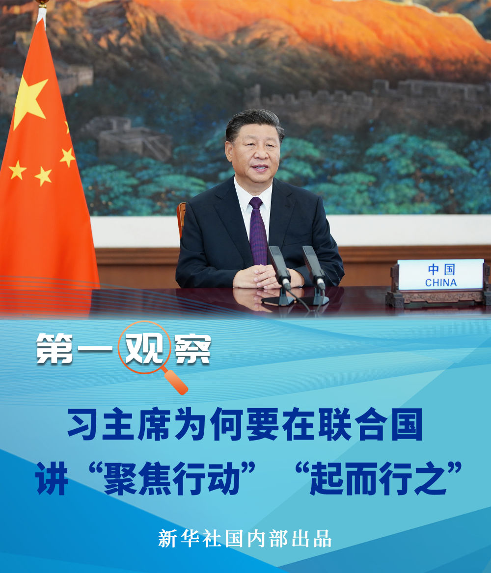 21日,在聯(lián)合國成立75周年紀(jì)念峰會(huì)上,習(xí)近平主席就聯(lián)合國如何發(fā)揮作用提出四點(diǎn)建議,其中點(diǎn)出“聚焦行動(dòng)”這一關(guān)鍵詞,強(qiáng)調(diào)“不能只開藥方,不見療效”。