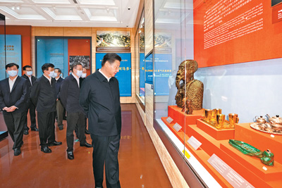 ■ 黨和國家領導人外交活動禮品具有特殊的歷史價值和豐富的人文內涵,凝聚著中國人民同世界各國人民的深厚情誼,也見證著新中國外交事業(yè)的輝煌成就。中國共產黨是為中國人民謀幸福的政黨,也是為人類進步事業(yè)而奮斗的政黨。我們將高舉和平、發(fā)展、合作、共贏旗幟,同世界各國人民深化友誼、加強交流,推動建設新型國際關系,推動構建人類命運共同體,推動共建“一帶一路”高質量發(fā)展,以中國的新發(fā)展為世界提供新機遇。要通過展覽,激勵全黨全國各族人民為實現(xiàn)全面建成社會主義現(xiàn)代化強國的第二個百年奮斗目標和中華民族偉大復興的中國夢而團結奮斗