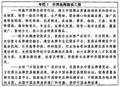 ——品牌建設取得更大進展。品牌培育、發(fā)展、壯大的促進機制和支持制度更加健全,品牌建設水平顯著提高,企業(yè)爭創(chuàng)品牌、大眾信賴品牌的社會氛圍更加濃厚,品質(zhì)卓越、特色鮮明的品牌領軍企業(yè)持續(xù)涌現(xiàn),形成一大批質(zhì)量過硬、優(yōu)勢明顯的中國品牌。