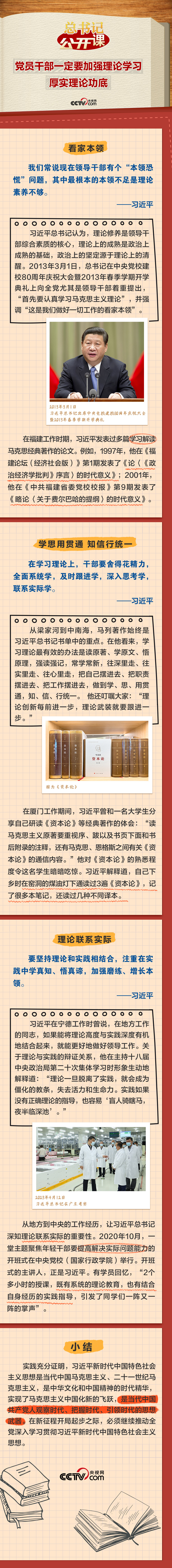習(xí)近平總書(shū)記高度重視對(duì)黨員干部理論學(xué)習(xí)能力的培養(yǎng)。他說(shuō):“黨員干部一定要加強(qiáng)理論學(xué)習(xí)、厚實(shí)理論功底,自覺(jué)用新時(shí)代黨的創(chuàng)新理論觀察新形勢(shì)、研究新情況、解決新問(wèn)題,使各項(xiàng)工作朝著正確方向、按照客觀規(guī)律推進(jìn)?!边@一期《總書(shū)記“公開(kāi)課”》聚焦總書(shū)記關(guān)于理論學(xué)習(xí)的深邃思考,讓我們一起領(lǐng)悟。