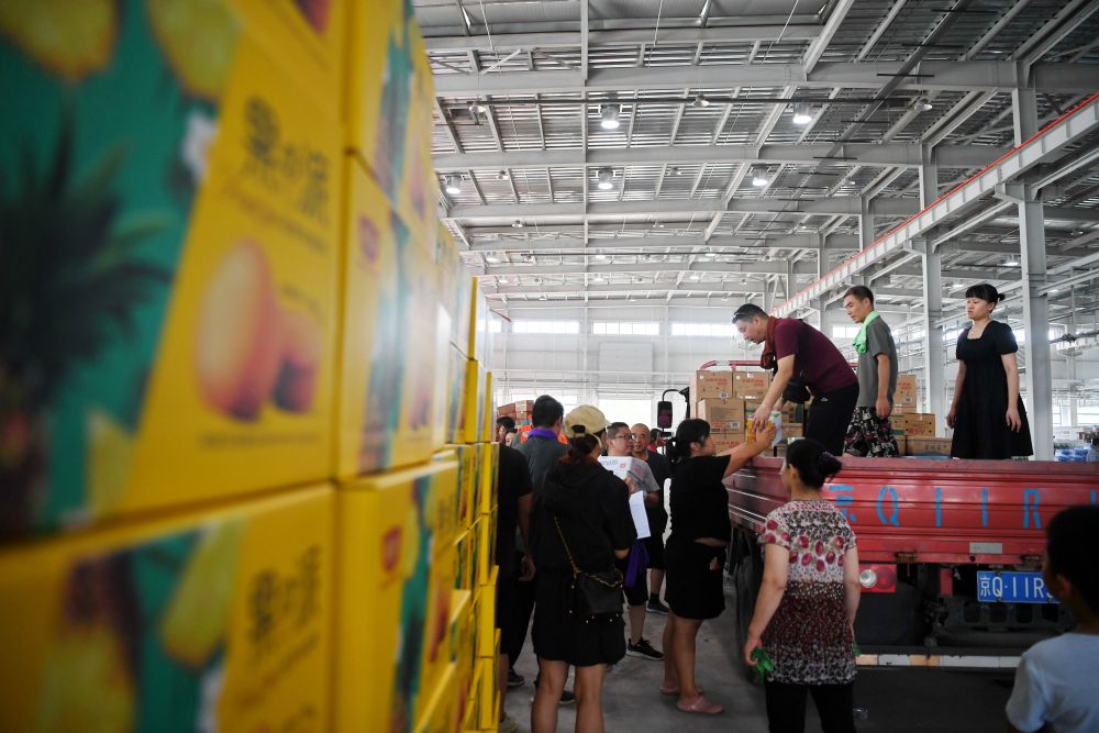 在河北省涿州市鋼研物資儲(chǔ)備點(diǎn)外,運(yùn)送物資的車輛排起長(zhǎng)隊(duì)(8月5日攝,無(wú)人機(jī)照片)。新華社記者 牟宇 攝 一瓶瓶礦泉水、一袋袋面包送到群眾手里……在廊坊市文安縣蘇橋鎮(zhèn)中學(xué)安置點(diǎn),受災(zāi)群眾正在領(lǐng)救援物資。 “一日三餐都有兩菜一湯和主食,在飯后還提供蘋果、香蕉、西瓜等水果。”苑口村村民楊小苓說,在安置點(diǎn)比較安心,最重要的是家人平安。