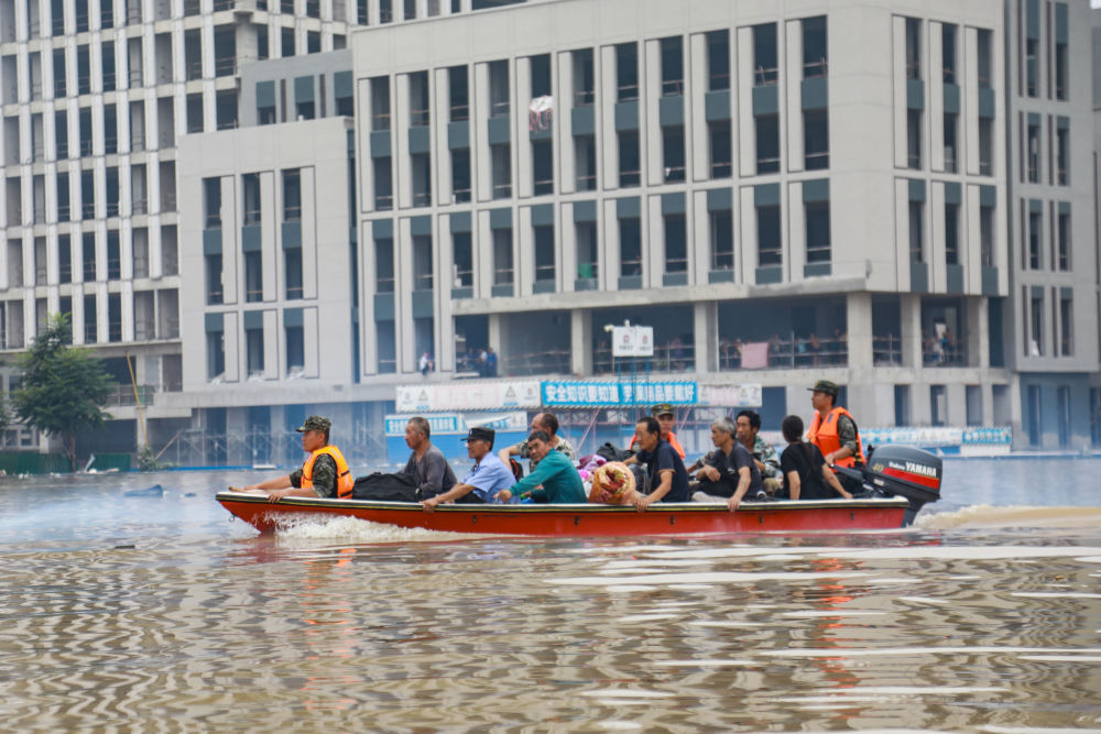 武警河北總隊(duì)官兵在涿州內(nèi)澇區(qū)域駕舟轉(zhuǎn)移受災(zāi)群眾(8月4日攝)。新華社發(fā)(江騰 攝) 在黨中央、國(guó)務(wù)院堅(jiān)強(qiáng)領(lǐng)導(dǎo)下,一系列應(yīng)急響應(yīng)隨即啟動(dòng): ——28日12時(shí),水利部針對(duì)北京、天津、河北、河南、山東、山西六省市啟動(dòng)洪水防御三級(jí)應(yīng)急響應(yīng)。 ——29日,中國(guó)氣象局啟動(dòng)重大氣象災(zāi)害(暴雨)一級(jí)應(yīng)急響應(yīng)。 ——30日,國(guó)家防總針對(duì)北京、天津、河北、山西、河南等省份啟動(dòng)防汛二級(jí)應(yīng)急響應(yīng)。 暴雨席卷而來(lái)。 河北全省一半多的縣(區(qū))遭遇洪澇災(zāi)害,同時(shí)大量洪水通過大石河、小清河、唐河、沙河等河道相繼流入河北,全省受災(zāi)人口222.29萬(wàn)。其中,涿州水淹面積一度達(dá)到城區(qū)60%,積水平均在1到1.5米,最深處達(dá)5到6米!