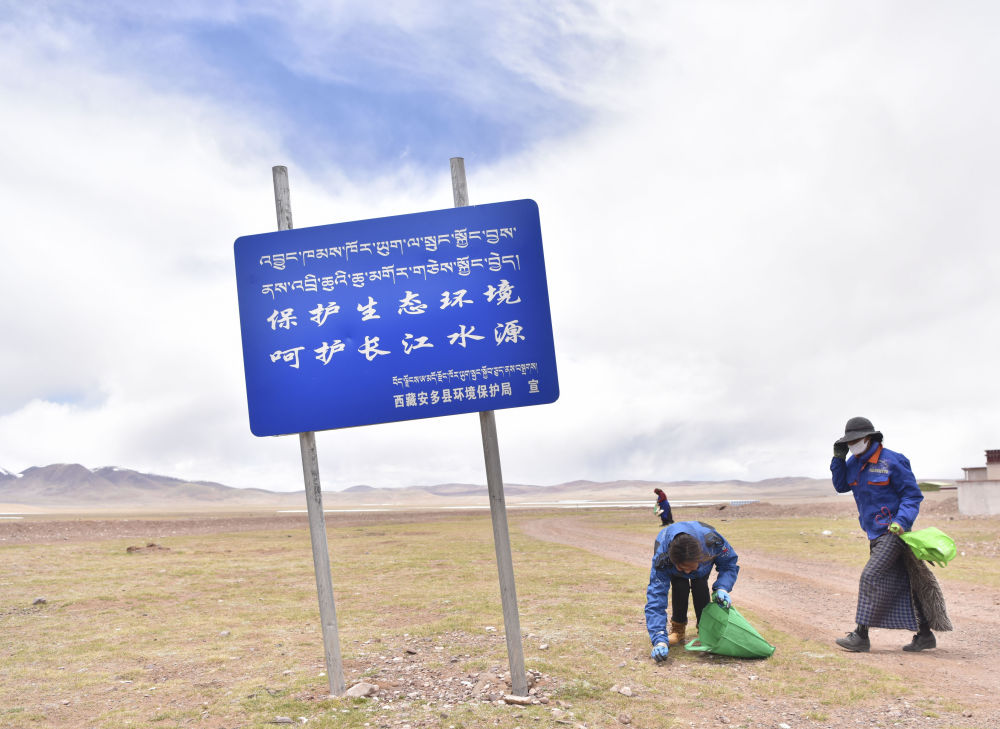 2019年5月28日,瑪曲鄉(xiāng)村民在撿拾垃圾。為保護(hù)長(zhǎng)江源生態(tài)環(huán)境,西藏安多縣瑪曲鄉(xiāng)每周都會(huì)在全鄉(xiāng)范圍內(nèi)組織“保護(hù)長(zhǎng)江源”撿拾垃圾活動(dòng),由各村黨員志愿者帶頭,生態(tài)巡護(hù)員參與,群眾自愿參加。