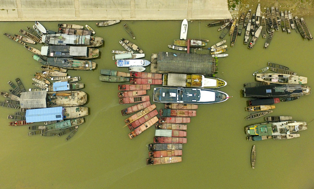 這是2019年12月17日在湖南常德漢壽縣蔣家嘴鎮(zhèn)拍攝的??吭诙赐ズ叺臐O船(無人機(jī)照片)。2020年1月1日零時(shí)起,長(zhǎng)江流域332個(gè)自然保護(hù)區(qū)和水產(chǎn)種質(zhì)資源保護(hù)區(qū)全面禁止生產(chǎn)性捕撈。長(zhǎng)江流域各地重點(diǎn)水域也相繼進(jìn)入為期十年的常年禁捕期。