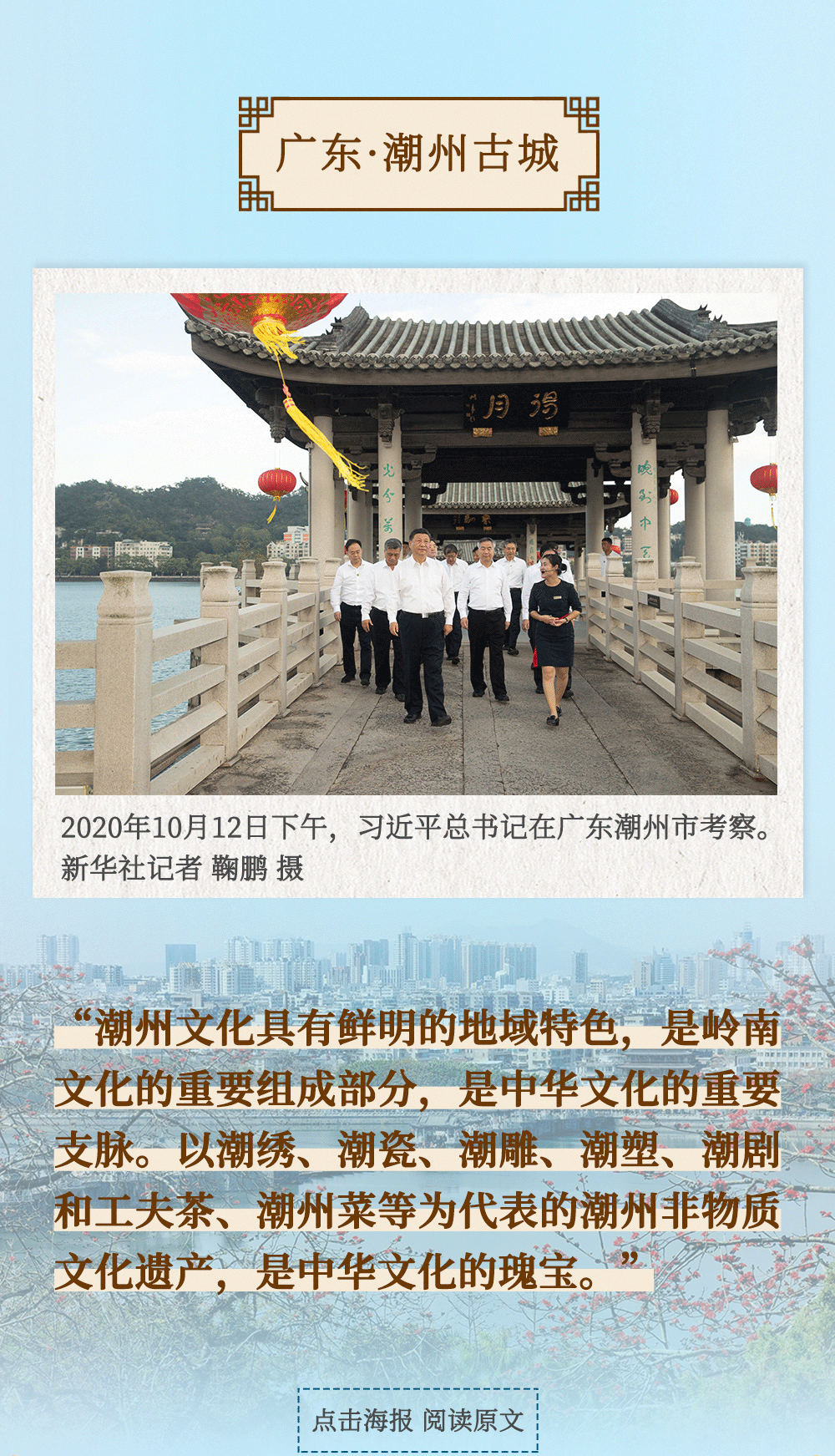 近期,新華社開(kāi)設(shè)了“習(xí)近平的文化足跡”欄目,梳理了黨的十八大以來(lái)習(xí)近平總書(shū)記考察調(diào)研過(guò)的部分重要文化遺產(chǎn)遺跡,回顧總書(shū)記提出的重要論斷、重要觀點(diǎn),展現(xiàn)當(dāng)?shù)匚拿}傳承、文化建設(shè)的生動(dòng)實(shí)踐。