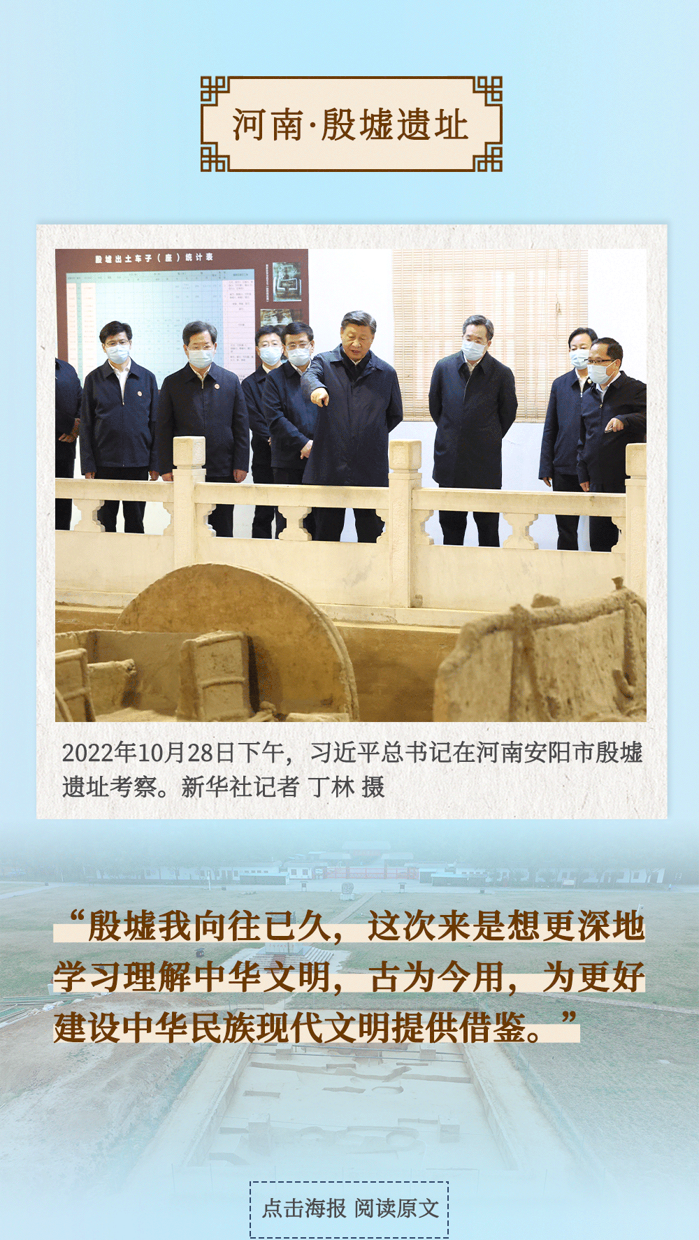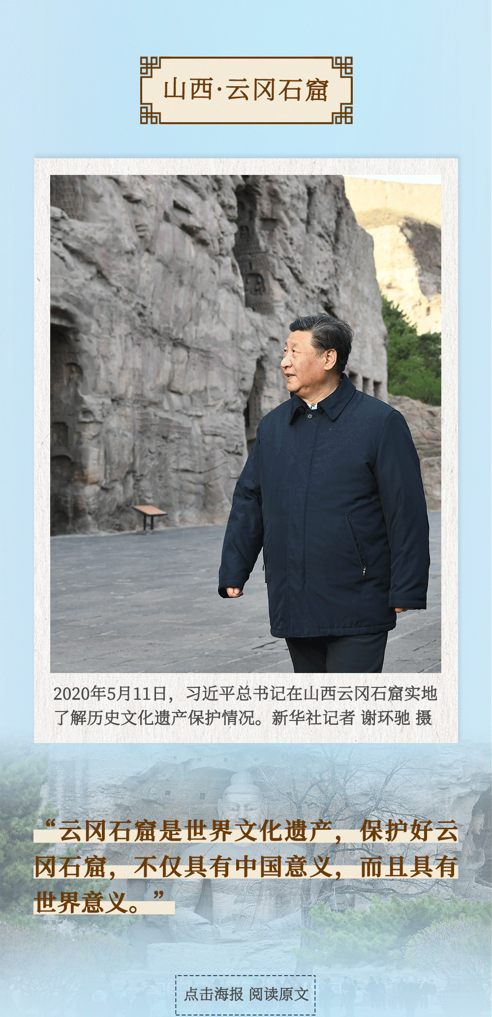 從四川三蘇祠到河南殷墟遺址,從山東孔府、孔子研究院到湖南大學(xué)岳麓書(shū)院,從甘肅嘉峪關(guān)關(guān)城到福建朱熹園,從山西云岡石窟到廣東潮州古城……考察文化遺產(chǎn)、探尋文明根脈,帶著深厚的歷史感,習(xí)近平總書(shū)記的“文化足跡”遍及全國(guó)。