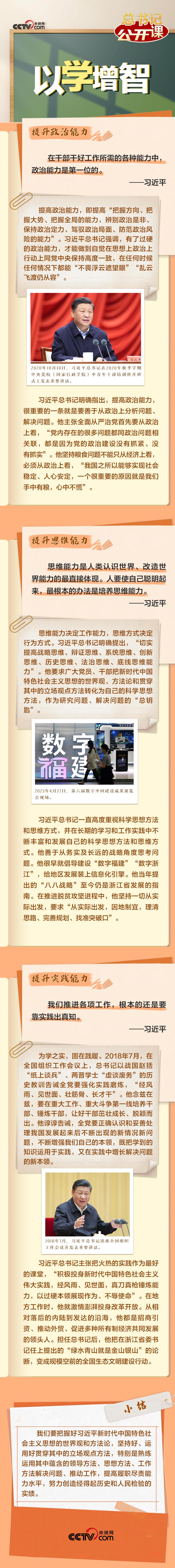 編者按:學(xué)習(xí)貫徹習(xí)近平新時(shí)代中國特色社會(huì)主義思想是新時(shí)代新征程開創(chuàng)事業(yè)發(fā)展新局面的根本要求。央視網(wǎng)《人民領(lǐng)袖習(xí)近平》專欄特別推出系列長圖解《總書記“公開課”》,與您一起從總書記的“知”與“行”中汲取奮發(fā)進(jìn)取的智慧和力量。