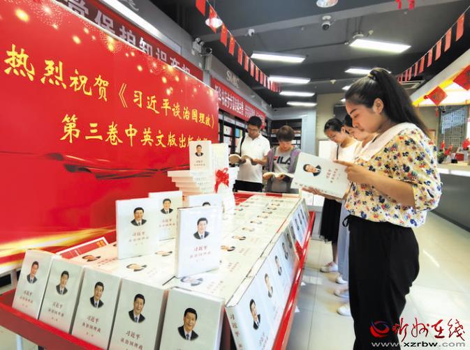 新華書店讀者翻閱新發(fā)行的《習近平談治國理政》第三卷