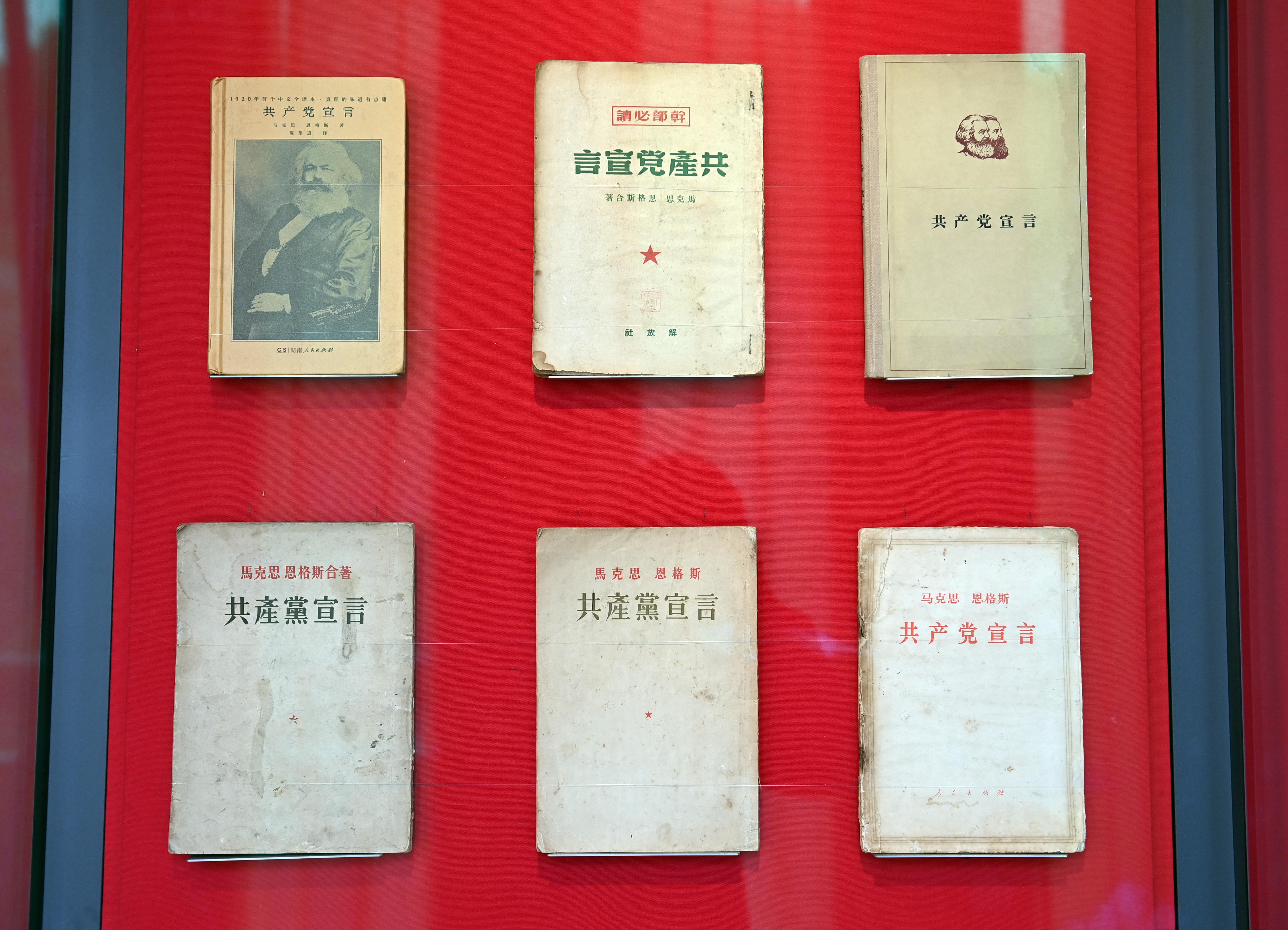 △中國(guó)國(guó)家版本館中央總館展示的不同版本的《共產(chǎn)黨宣言》。