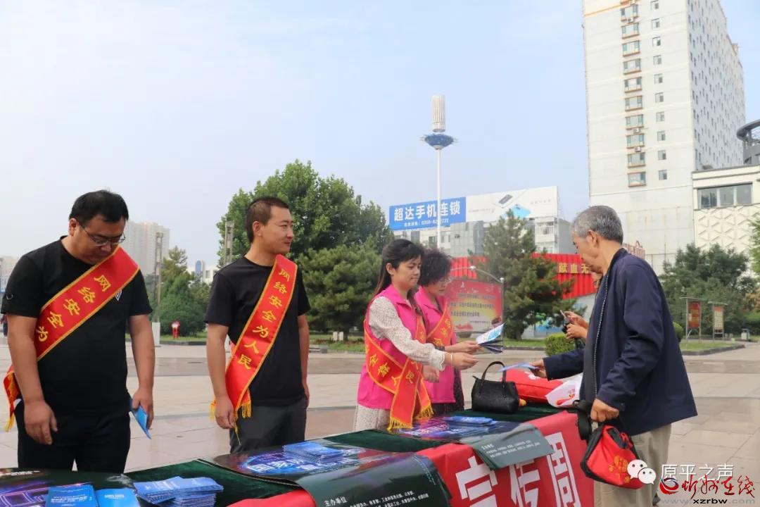 9月14日上午,原平市委宣傳部、市委網信辦、市公安局、市教科局、市工信局、團市委、市婦聯、中國人民銀行等單位聯合在街心廣場開展集中宣傳,向市民發(fā)放宣傳資料。同時,工作人員還走到街頭向過往群眾講解網絡安全基礎知識、個人信息保護等知識,極大地調動廣大群眾參與網絡安全防護活動的熱情。