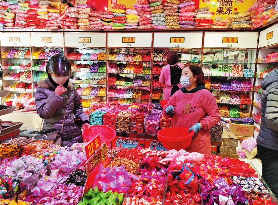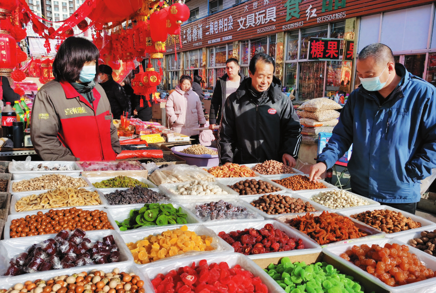 忻州各大商家提前籌劃、備足貨源,為市民歡度新春佳節(jié)做好了準(zhǔn)備。忻州小食品綜合批發(fā)市場是城區(qū)一家經(jīng)營多年的市場,總占地面積12000平米,分為四個區(qū)域,現(xiàn)有商戶152家,經(jīng)營有上萬種商品。1月10日,記者走進忻州小食品綜合批發(fā)市場,看到前來購物的市民都戴著口罩、包裹嚴(yán)實,盡管是三九寒冬,卻絲毫阻擋不住市民購年貨的熱情。