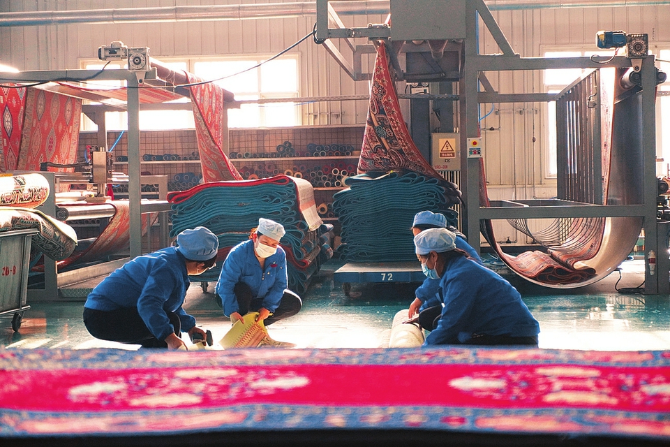 此前受疫情影響,雅瑞地毯遇到了和其他企業(yè)一樣的問題?!暗覀冋美媚嵌慰諜n期,將視角轉(zhuǎn)向產(chǎn)業(yè)轉(zhuǎn)型升級和新品研發(fā)?!必?fù)責(zé)產(chǎn)品研發(fā)的車間經(jīng)理宋麗芳告訴記者,“我們持之以恒加大科技創(chuàng)新力度,用3個月時間完成了3款產(chǎn)品的設(shè)計(jì)與研發(fā),現(xiàn)在正趕制受疫情影響積壓下來的訂單。”