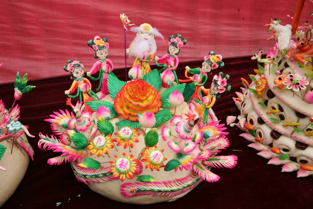 地處運城盆地北端的聞喜縣氣候溫和、四季分明,適宜小麥生長。純白而筋道的小麥粉,是蒸制花饃的上好原料。千百年來,聞喜人每日三餐以饃為主,蒸饃和制作花饃也逐漸演變?yōu)楫數氐膫鹘y(tǒng)。