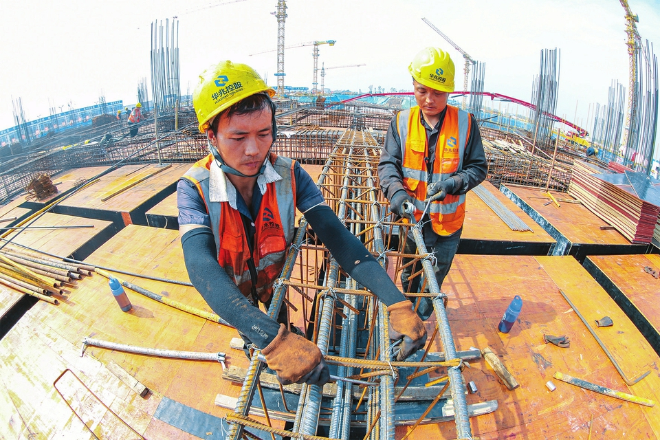 10月1日,建筑工人正在運(yùn)城市會展中心項目建設(shè)工地做基礎(chǔ)施工。國慶長假期間,承建總建筑面積82萬平方米會展中心項目的運(yùn)城市建工集團(tuán)200余名建筑工人,堅守施工一線,嚴(yán)格按照時間表、路線圖,采取人休機(jī)不停的晝夜輪班制施工,確保重點(diǎn)項目的有序推進(jìn)。(姜樺攝)