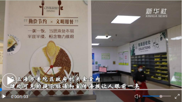 “點菜點少、不夠再添”“光盤行動、從我做起”“厲行節(jié)約、反對浪費”……在上海市普陀區(qū)政府機關食堂內(nèi),隨處可見的提示標語和宣傳海報讓人眼前一亮。