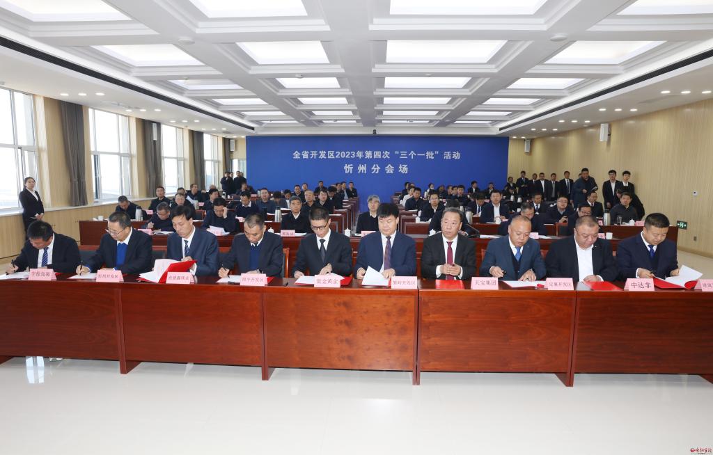 與省主會(huì)場(chǎng)同步,李建國(guó)主持舉行了忻州市“簽約一批”代表項(xiàng)目集中簽約活動(dòng)。忻州經(jīng)濟(jì)開(kāi)發(fā)區(qū)新能源包裝材料制造加工項(xiàng)目、原平經(jīng)濟(jì)技術(shù)開(kāi)發(fā)區(qū)高純鎂創(chuàng)新提純精煉工藝及高品質(zhì)鎂合金深加工產(chǎn)品項(xiàng)目、繁峙經(jīng)濟(jì)技術(shù)開(kāi)發(fā)區(qū)黃金深加工項(xiàng)目、定襄經(jīng)濟(jì)技術(shù)開(kāi)發(fā)區(qū)年產(chǎn)萬(wàn)噸精密環(huán)鍛件智能改造項(xiàng)目、岢嵐經(jīng)濟(jì)技術(shù)開(kāi)發(fā)區(qū)光電一體化產(chǎn)品技術(shù)開(kāi)發(fā)項(xiàng)目、靜樂(lè)現(xiàn)代農(nóng)業(yè)產(chǎn)業(yè)示范區(qū)新型光伏支架生產(chǎn)基地項(xiàng)目、神池現(xiàn)代農(nóng)業(yè)產(chǎn)業(yè)示范區(qū)旭通農(nóng)業(yè)產(chǎn)業(yè)發(fā)展建設(shè)項(xiàng)目、五臺(tái)現(xiàn)代農(nóng)業(yè)產(chǎn)業(yè)示范區(qū)五臺(tái)山釀酒廠二期建設(shè)項(xiàng)目、五寨現(xiàn)代農(nóng)業(yè)產(chǎn)業(yè)示范區(qū)農(nóng)產(chǎn)品流通中心建設(shè)項(xiàng)目和偏關(guān)生態(tài)文化旅游示范區(qū)90MW風(fēng)力發(fā)電項(xiàng)目等10個(gè)代表項(xiàng)目,分兩個(gè)批次進(jìn)行了集中簽約。