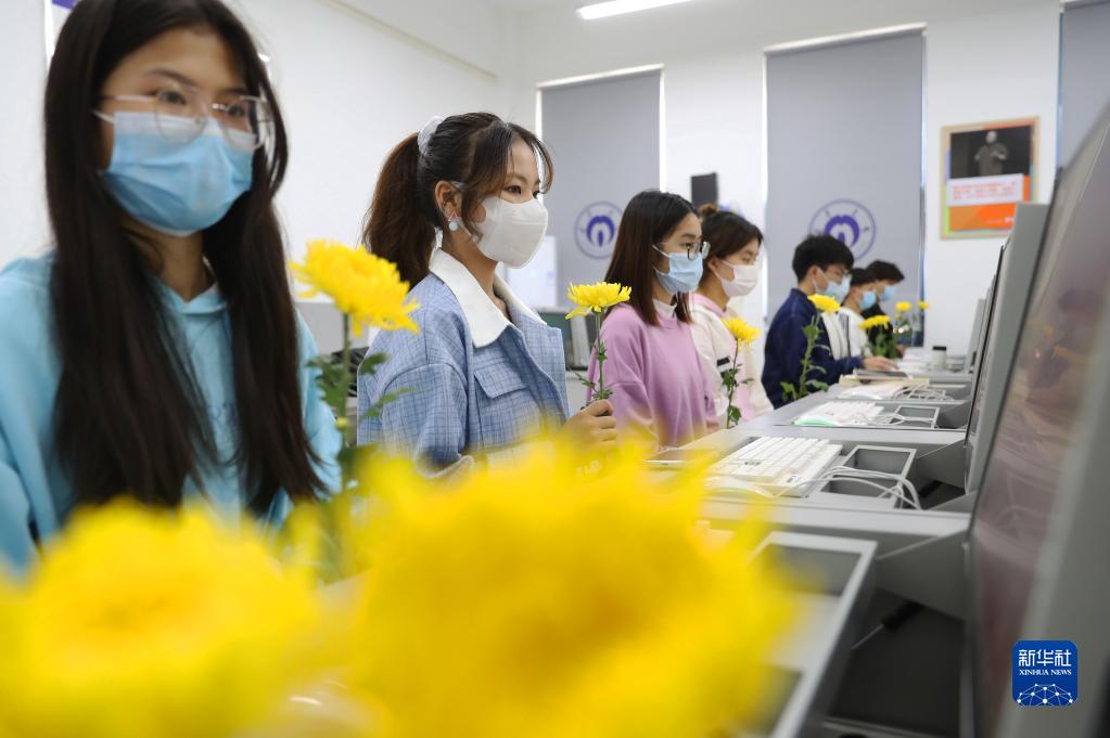 4月4日,在湖南省衡陽市南華大學經(jīng)濟管理與法學學院,同學們參加網(wǎng)上祭英烈活動。