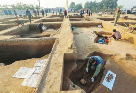 陶寺遺址的考古成果尤為令人矚目。經(jīng)過40多年的辛勤工作,考古人員確認這是一處具有宮城和外郭城的大型都邑性遺址,城址建造和使用的年代距今約4300—3900年。陶寺遺址中發(fā)現(xiàn)了我國目前最早的宮城、世界最古老的觀象臺、我國最早的文字、最古老的禮樂器系統(tǒng)等重要遺跡和遺物,這些發(fā)現(xiàn)對于研究華夏文明起源和都城制度具有重要意義。