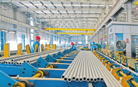 巨大的生產(chǎn)車間內(nèi),機器轟鳴,一根根坯料經(jīng)過穿孔、酸洗、拋光、冷軋等近40道工序,變成锃亮堅固的不銹鋼管,發(fā)往國內(nèi)外企業(yè),成為電站、鐵路、新能源、油氣開采等行業(yè)的重要材料。在山西太鋼不銹鋼鋼管有限公司,一系列特色管材產(chǎn)品實現(xiàn)了在重大裝備上的突破性應(yīng)用,提高了太鋼鋼管產(chǎn)品的美譽度和競爭力。