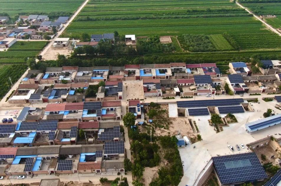 家家農(nóng)戶(hù)屋頂上藍(lán)色光伏板閃閃發(fā)光
