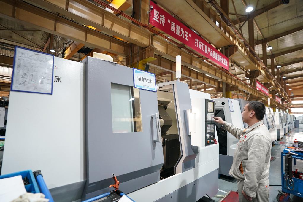 通用技術(shù)集團(tuán)沈陽(yáng)機(jī)床的工人在車間工作。新華社記者潘昱龍 攝