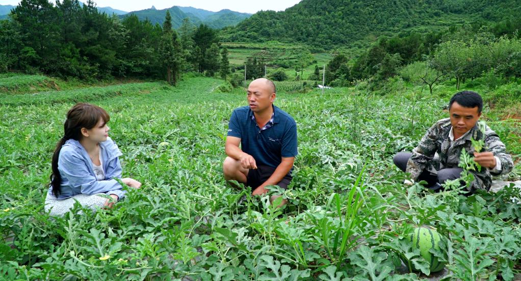 圖為貴陽市烏當區(qū)新堡鄉(xiāng)新堡村一農(nóng)場負責(zé)人林正福查看西瓜生長情況。(韋登亮 攝)