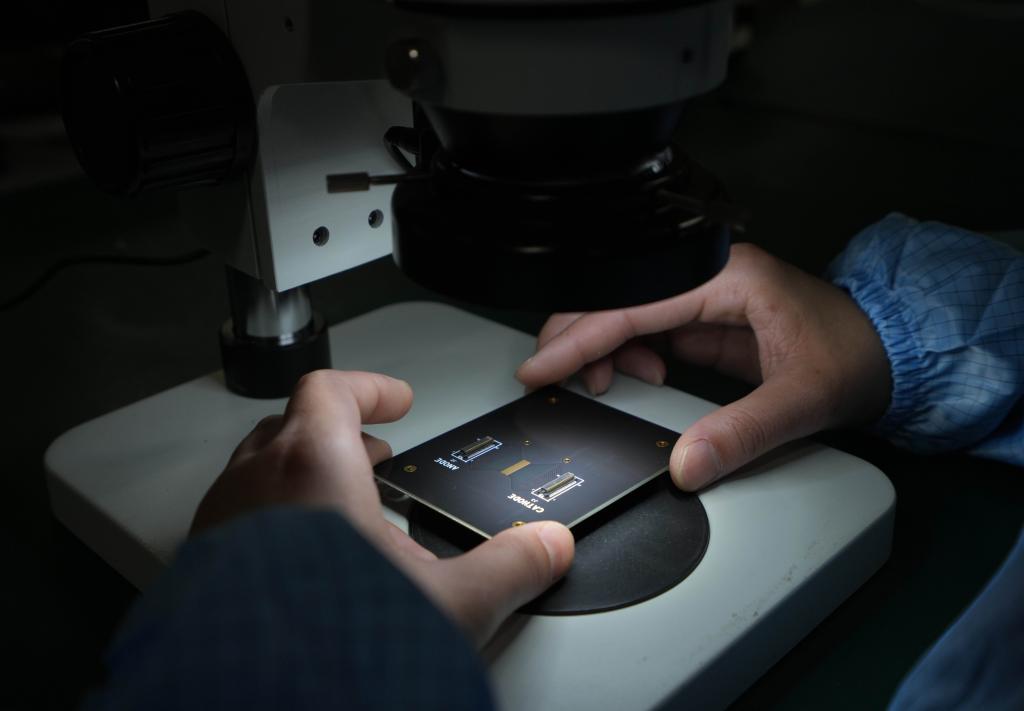 6月2日,工作人員在蘇州光電技術(shù)研究院的封裝測(cè)試公共服務(wù)平臺(tái)車間內(nèi)檢測(cè)一塊激光雷達(dá)芯片。新華社記者 李尕 攝