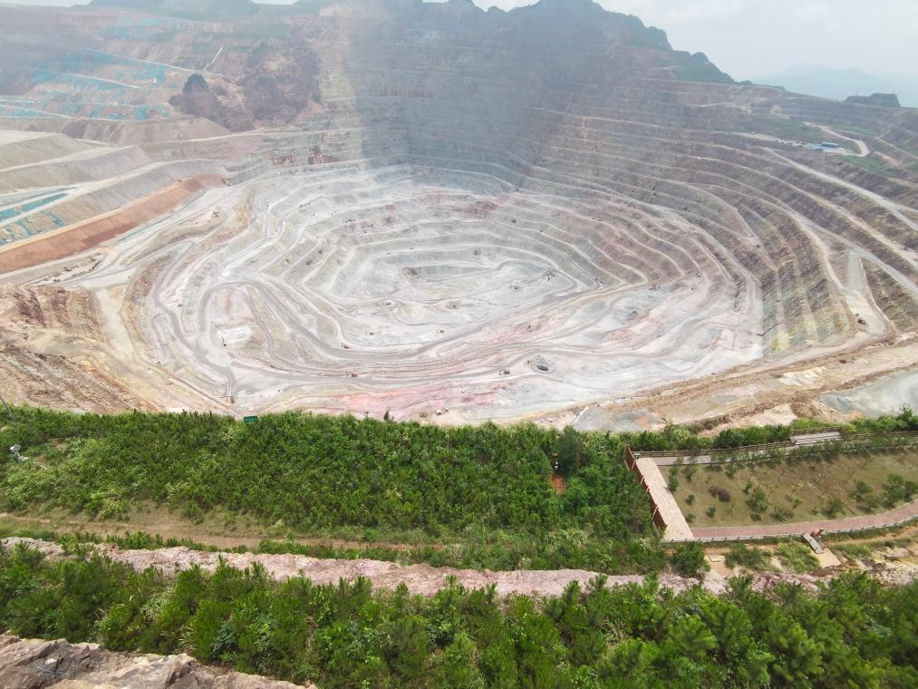 邊生產(chǎn)邊進(jìn)行礦坑邊坡治理的紫金山金銅礦。新華社記者 秦宏 攝