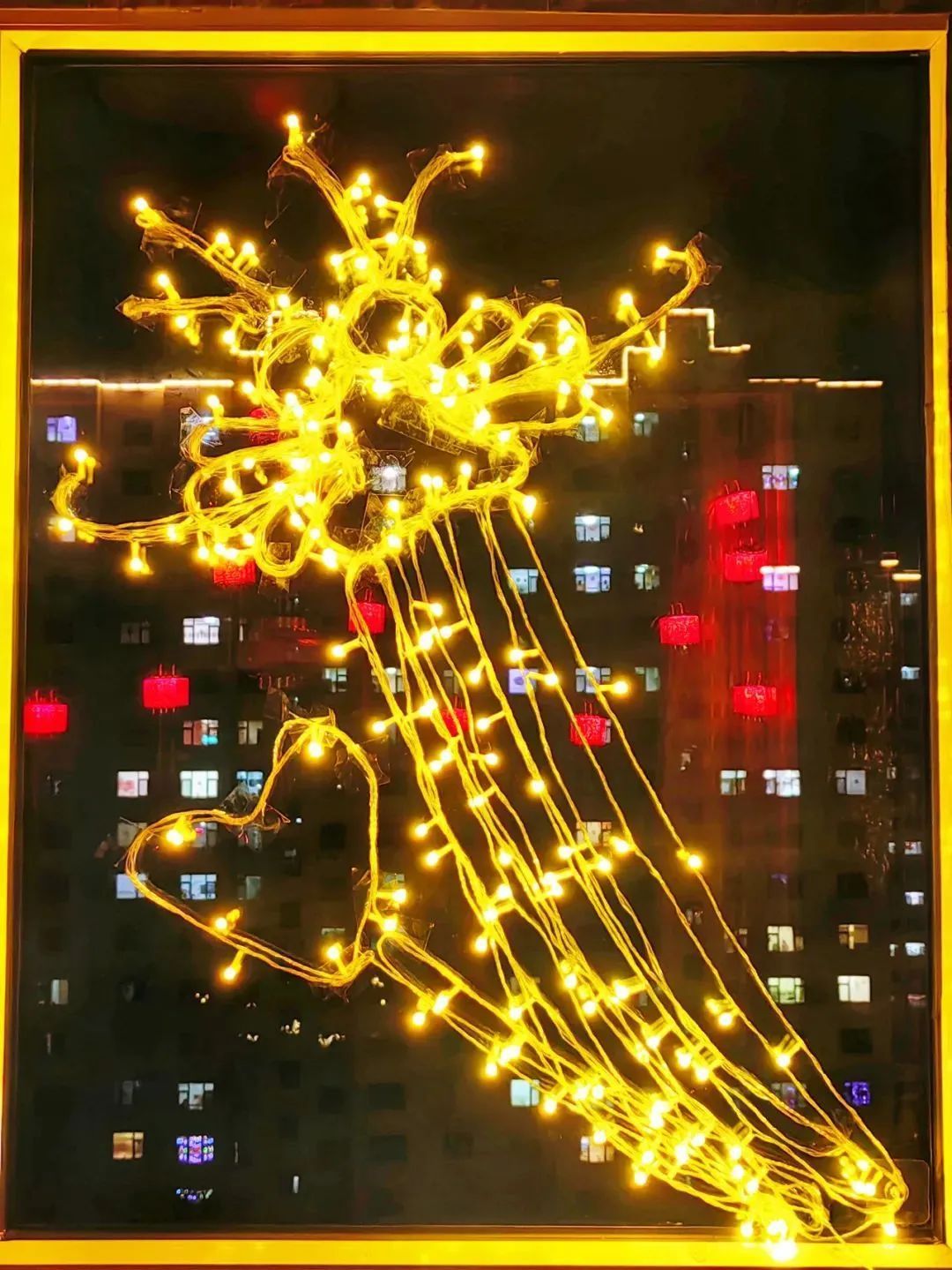 在陽(yáng)城,市民從陽(yáng)阿廣場(chǎng)彩燈旁經(jīng)過(guò),春節(jié)期間處處張燈結(jié)彩,節(jié)日氛圍濃厚