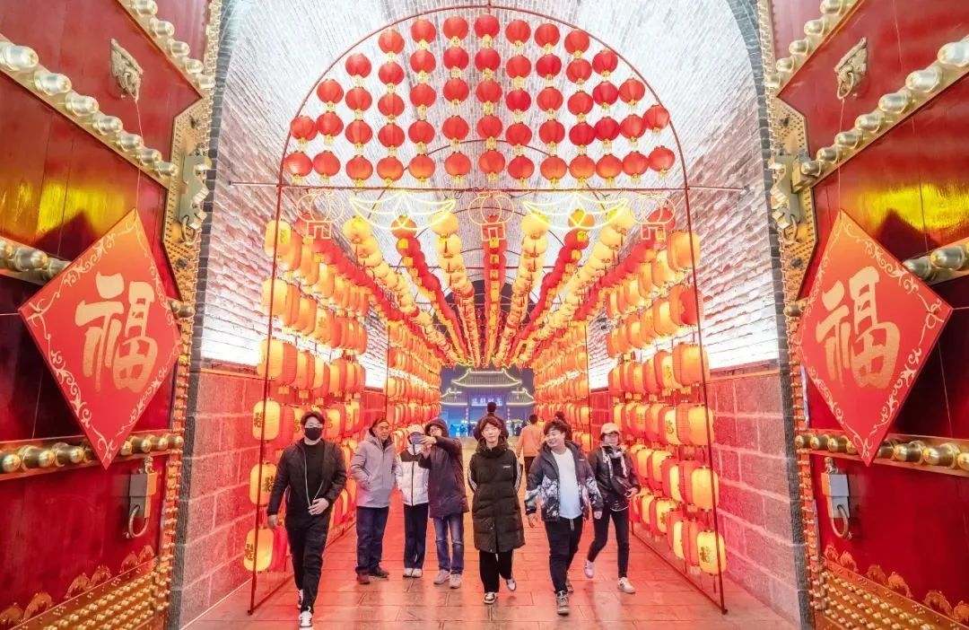 在晉城,陽(yáng)城縣各廣場(chǎng)、公園、街道處處張燈結(jié)彩,人們?cè)跐鉂饽晡吨斜M情游玩,樂(lè)享春節(jié)假期。