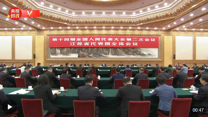 5日下午,中共中央總書記、國家主席、中央軍委主席習近平參加他所在的十四屆全國人大二次會議江蘇代表團審議。