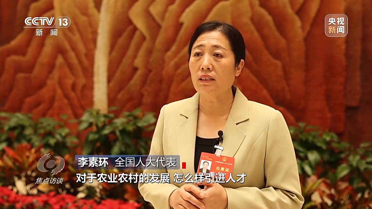 全國人大代表 李素環(huán):總書記非常關注農(nóng)村農(nóng)業(yè)的發(fā)展,對于農(nóng)業(yè)農(nóng)村的發(fā)展,怎么樣引進人才作出很多部署。人才引進機制不斷完善,會有一大批人才到農(nóng)村里去,愛上農(nóng)村,我相信到那時候我們農(nóng)村會是一幅很美麗的畫卷。
