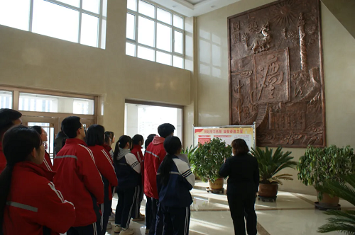 “這是什么字呢?”站在浮雕墻前,同學(xué)們提出疑問。